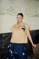 Vest ini terbuat dari bahan suede berkualitas dengan tekstur lembut dan tampilan elegan. Desain tanpa lengan dengan potongan clean memberikan kesan modern dan effortless. Dilengkapi dengan resleting depan yang fungsional serta detail kancing metal sebagai aksen.